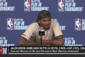 体育资讯4月18日讯 NBA附加赛,太阳111-96击败勇士,赛后杰伦·格林接受了媒体采访,以下为完整采访。
