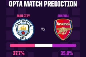 Opta的超级计算机认为本场比赛难以预测,在一万次模拟中,曼城的胜率为37.7%,占据微弱优势,阿森纳的胜率为35.8%,而平局的概率为26.5%。