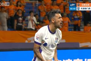 体育资讯04月17日讯 中超第6轮,云南玉昆vs天津津门虎,比赛第41分钟,天津津门虎首开记录,基莱斯面对出击的门将垫射破门。